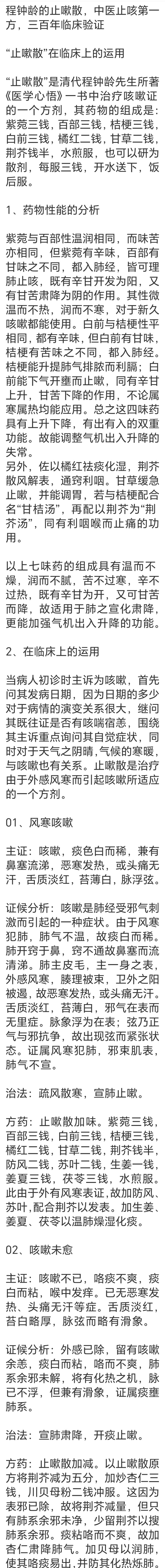 程钟龄的止嗽散, 中医止咳第一方, 三百年临床验证